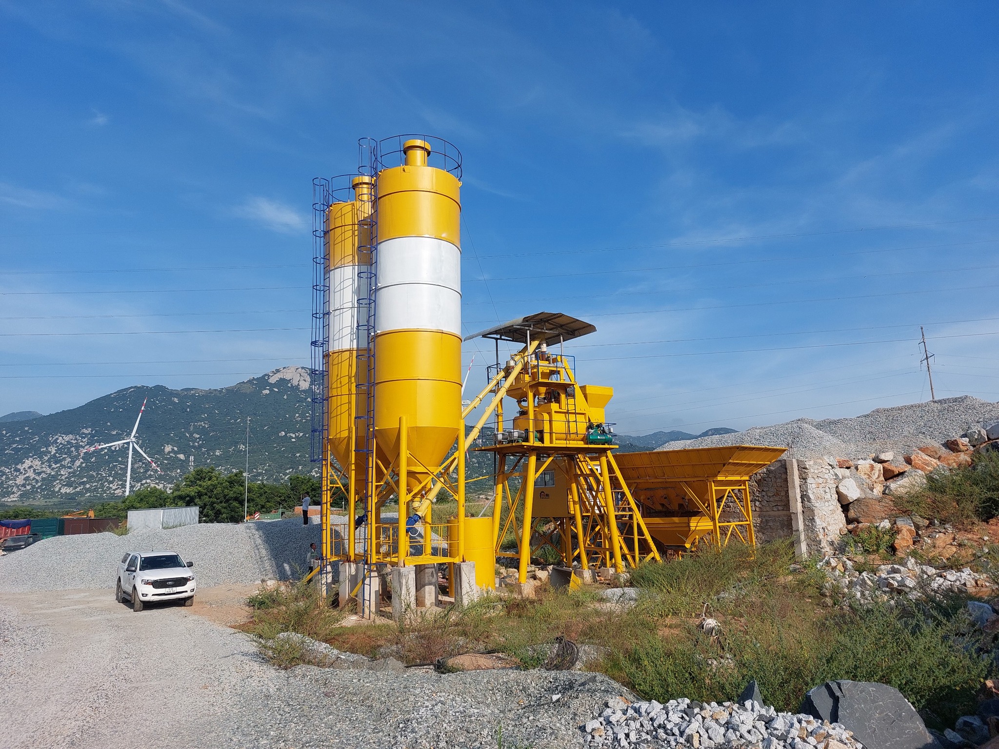 Máy phát điện, băng tải cấp liệu, silo chứa xi măng: Đầy đủ phụ trợ cho hệ thống trạm trộn.