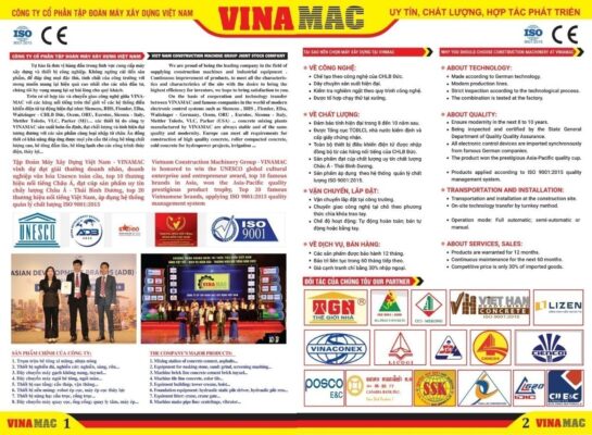 Công Ty Cổ Phần Tập Đoàn Máy Xây Dựng Việt Nam – VINAMAC đạt giải thưởng DOANH NHÂN, DOANG NGHIỆP VĂN HÓA UNESCO, TOP 10 THƯƠNG HIỆU NỔI TIẾNG CHÂU Á, ĐẠT CÚP SẢN PHẨM UY TÍNH CHẤT LƯỢNG CHÂU Á – THÁI BÌNH DƯƠNG; DOANH NHÂN TRẺ SAO ĐỎ; ĐẠT CHỨNG NHẬN ISO 9001:2015. VINAMAC có trụ sở tại TP. Thủ Đức, TP. Hồ Chí Minh; Văn Phòng Tại Hà Nội, Campuchia, Lào; Nhà Máy: Cụm Công Nghiệp Phước Tân, Biên Hòa, Đồng Nai. Chúng tôi chuyên cung cấp các thiết bị máy xây dựng và dây chuyền tự động như: Trạm trộn bê tông, máy nghiền đá, dây chuyền máy gạch, dây chuyền đúc cống,…