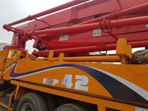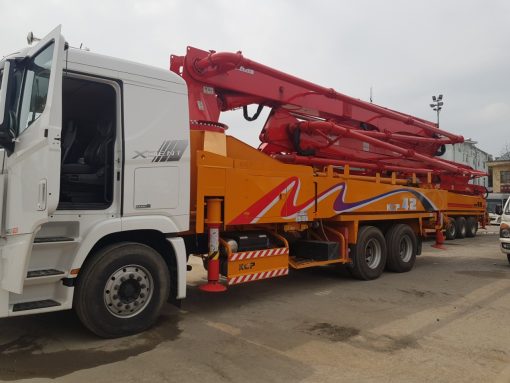 Máy bơm cần bê tông là thiết bị bơm bê tông, có ống dẫn được cố định vào thân máy. Chiều dài, cao tối đa có thể cung cấp bê tông bằng chều dài của ống.
