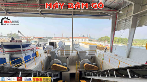 → Băm nguyên liệu thô (cành, gốc cây) thành dăm.