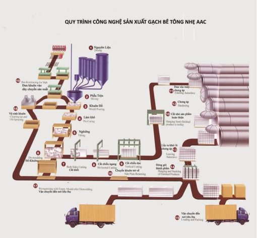 - Là loại máy tạo ra những viên gạch AAC với trọng lượng nhẹ, có khả năng cách nhiệt cao