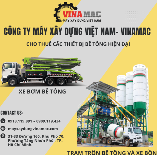 Trong bối cảnh các công trình xây dựng ngày càng yêu cầu tiến độ nhanh, chất lượng cao và tiết kiệm chi phí, việc thuê thiết bị bê tông thay vì đầu tư mới đã trở thành giải pháp tối ưu cho nhiều nhà thầu. Hiểu được nhu cầu đó, VINAMAC mang đến dịch vụ cho thuê trạm trộn bê tông, xe bồn, xe bơm và thiết bị bê tông hiện đại – đáp ứng mọi quy mô công trình từ nhỏ đến lớn.