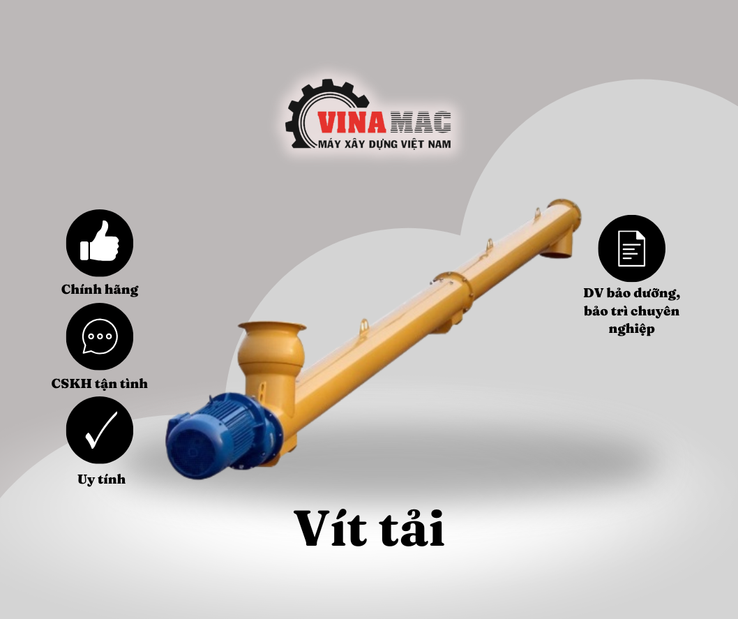 Vít tải xi măng hay vít tải bê tông là những thiết bị vô cùng cần thiết để có được một trạm trộn bê tông hoàn chỉnh.Với nhiệm vụ chính của vít tải là chuyển xi măng từ xi lô lên nồi trộn. Sử dụng trong vận chuyển vật liệu từ trạm trộn bê tông xi măng tới máy trộn xi măng từ hầm chứa để vận chuyển xi măng rời giữa theo quy mô công nghiệp, khối lượng lớn.